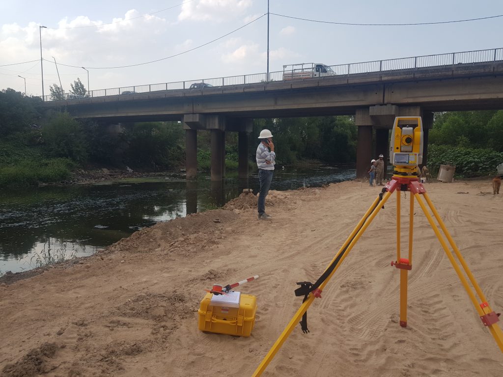 Replanteo de bases para la construcción de puente de doble mano en la localidad de Hurlingam – Buenos Aires